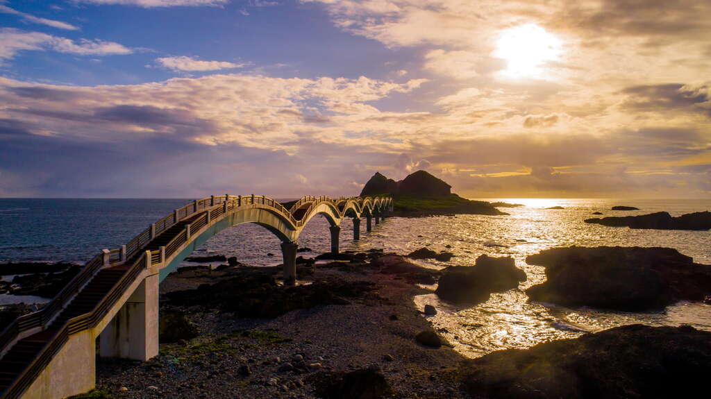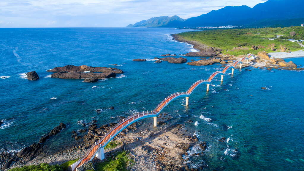 Located in Chenggong Township, Taitung County, Sanxiantai is one of the most iconic natural and cultural landmarks on the East Coast. Its centerpiece is a magnificent eight-arch cross-sea footbridge that resembles a reclining dragon. This landmark connects the main island of Taiwan to an offshore islet, guiding visitors on an exploratory journey that seamlessly blends ancient mythology with maritime wonders. The islet itself is a geological treasure trove, covered with spectacular formations of volcanic agglomerate, including sea stacks, potholes, and tunnel-like sea arches that offer breathtaking views of the Pacific.