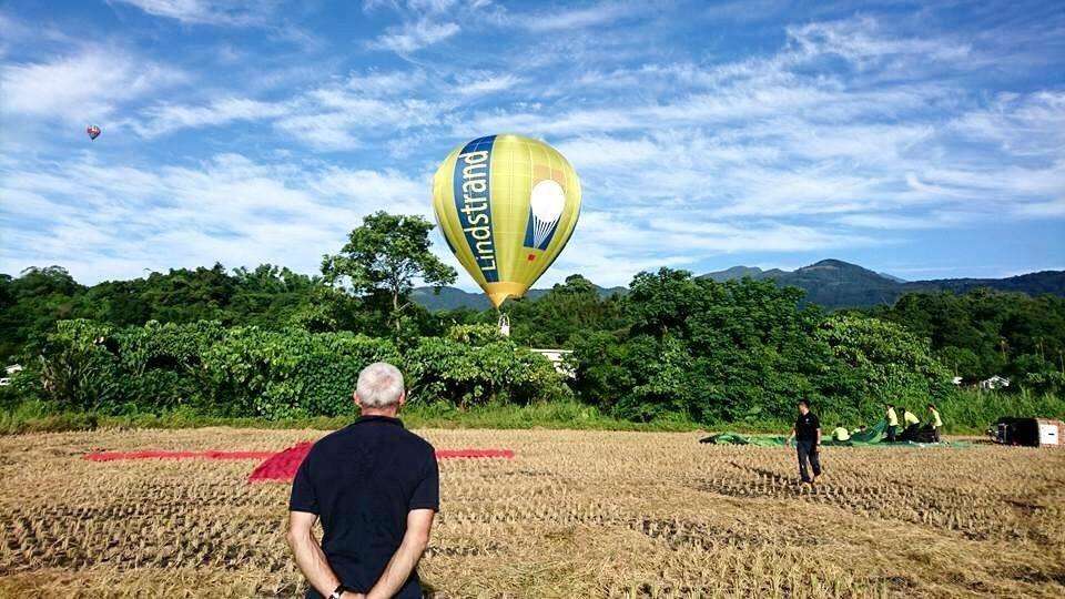 The Taiwan International Balloon Festival, which has continually pushed the limits and broken records over the years, is the venue of the first-ever Taiwan International Balloon Challenge Cup. The competition was held between July 2 and 6 from 5:00 a.m. to 7:30 a.m. each day. Pilots from all over the world, including Taiwan, competed for a total of USD 9,500 in prize money. Angel Aguirre, a Spanish pilot who has competed in and won numerous events over many years, served as competition director. At 5:00 a.m. on July 2 at the Luye Plateau, Taitung County Magistrate Justin Huang raised the green flag while central flight commander Wout Bakker announced the official beginning of the event. The competing balloons took off one after another, and Magistrate Huang enjoyed the perk of riding along with local pilot Chiu.