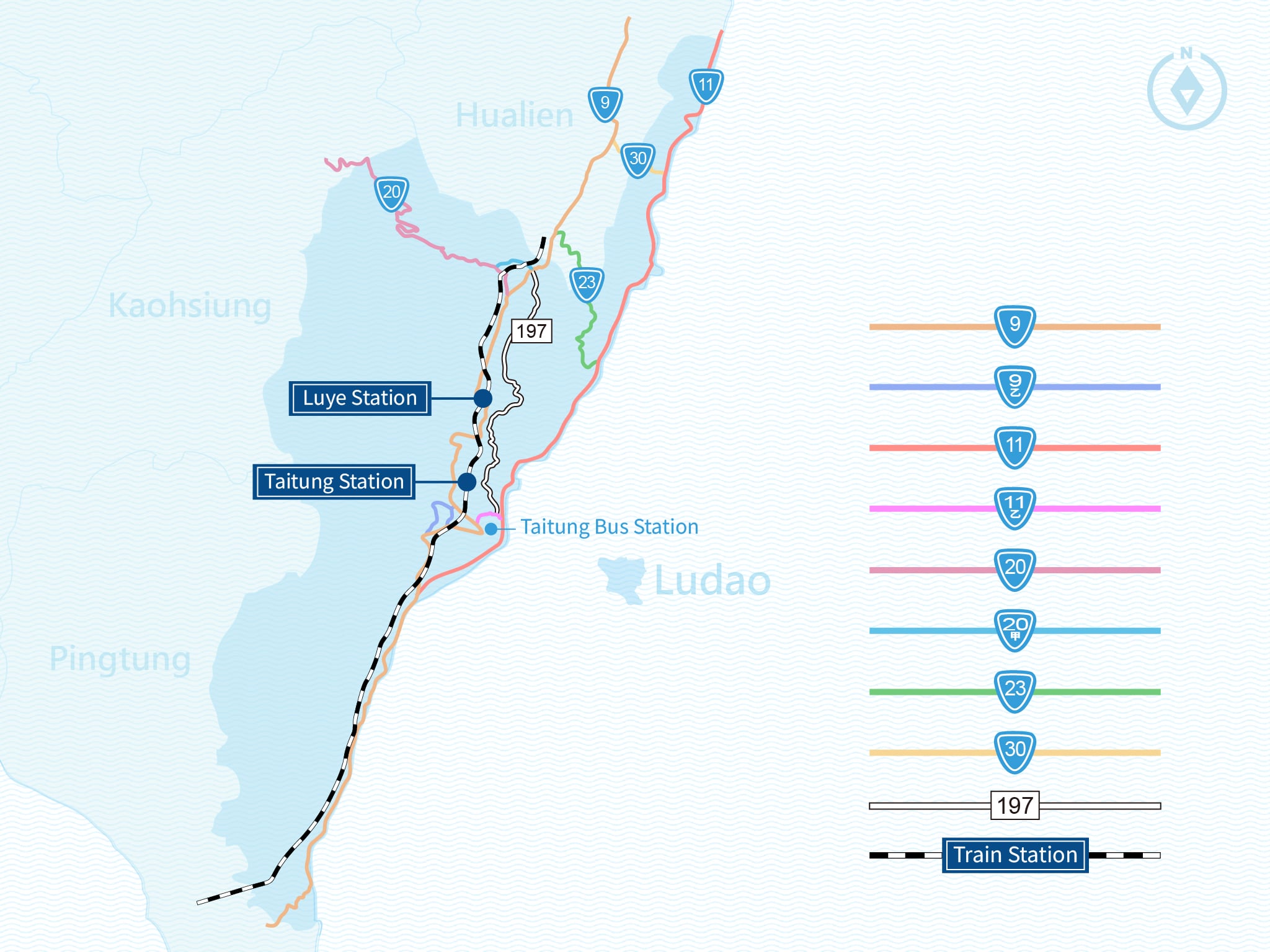 Those who like to take public transportation and want to arrange their itinerary are most suitable to take urban buses, such as East Top Transport, Shing Dong Bus, Puyuma Bus, etc., for you to choose routes from the airport, station, mountains, and seas!