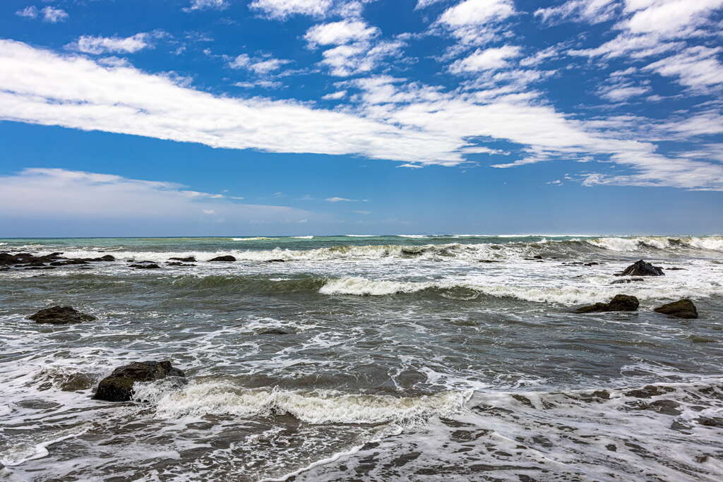 杉原湾の海面にはオレンジ色のブイロープで警戒ラインが示されています。警戒ラインの内側、砂浜からはおよそ100メートル、幅100メートルの範囲がライフガードの警戒範囲で、ライフガードが常駐するのは4/1-9/30の10:00-18:00です。9/30以後ライフガードはいませんが、水に入ることはできます(但し、ライフガードがいないことをご承知おきください)。