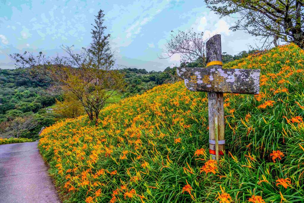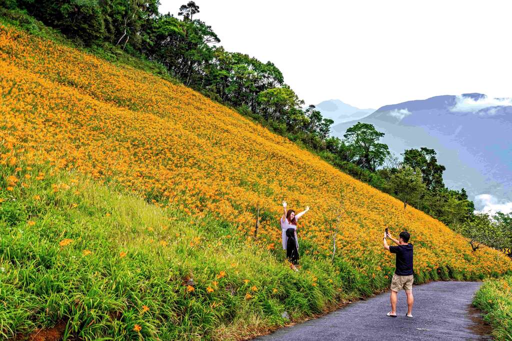 アンカーポイント毎年の8月から9月に、蛇行して曲がりくねった細い山道を登り、標高1300メートルにたどり着くと、金色に染まるワスレグサの花畑が見れるこの地はます。金針ワスレグサ山とも呼ばれています。