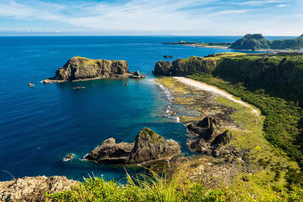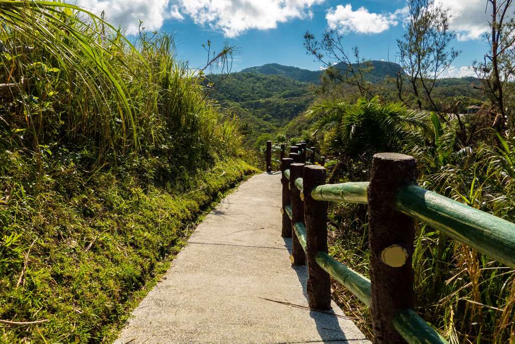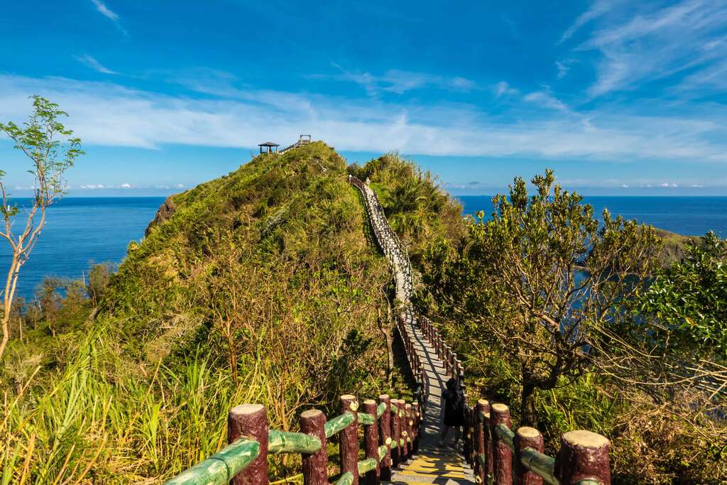 アンカーポイント海参坪は火山集塊岩でできた湾です。北側斜面には約400mの石段遊歩道があり、緑島の海景と地質を眺めるには最高の地点です。遊歩道を上っていき、小長城を経て観景亭に上がると、睡美人、哈巴狗岩、貝殼と珊瑚のビーチ、柱状火山岩、柚子湖海湾等の景色を見渡すことができます。また、公路傍の小道を通り海参坪まで行けば、原生植物群と潮間帯の生物を至近距離で観察することができます。睡美人岩と哈巴狗岩は、景観区内で最も人気の高い岩礁景観で、岸辺に立ち、この二つの礁岩を眺めると、主人に忠実なパグが傍らで伏せをして、静かに岸辺に佇む睡美人を守っているように見えます。