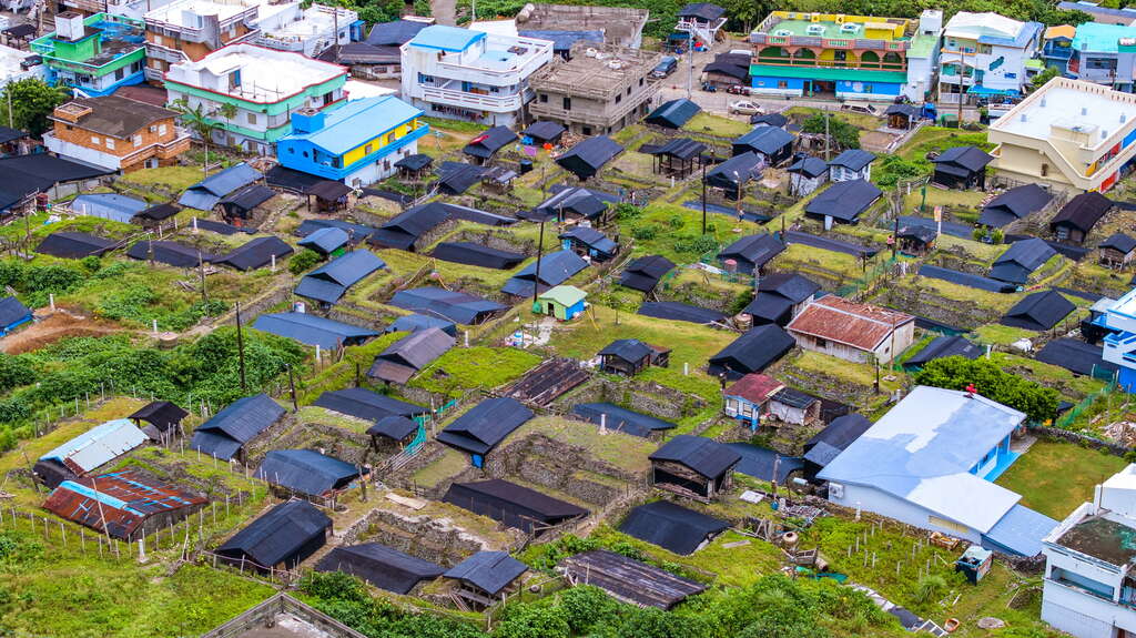 アンカーポイントユニークな雅美族の伝統家屋は、半分が地下で半分が地上という半地下式住居です。完全な家は主屋、作業部屋、涼台で構成されています。主屋は、地面を階段式に山形に掘って作り、掘り出した土は周囲に置き、海に向かって屋根だけが地上に露出した半地下式です。主屋前には数個の大きな石を置き、休息用の「背もたれ」としています。作業部屋は地上に作り、床板は地表と続き、多くが長方形の一部屋形式です。家の前に建つ涼台は、屋根だけで壁はなく、通風と眺めが最高で、近所どうしのおしゃべりや休憩に使われます。冬は暖く夏は涼しい半地下式住居は、タオ族の智慧の象徴ですが、時代の変遷と共に、蘭嶼の半地下式住居も多くが現代風の一戸建て建築に取って代わられています。現在では朗島、野銀等の原住民部落が伝統家屋を保存してます。
