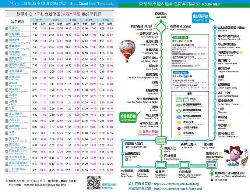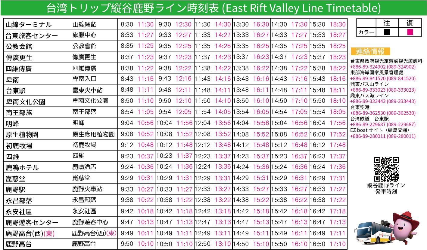更新日:2014-12-15投稿単位:台東県政府3097Facebookで共有Twitterで!Weiboで共有友達にLINE コンテンツこの時刻表は台湾トリップ(台湾好行バス)「東部海岸ライン」と「縦谷鹿野ライン」の時刻表。添付ファイルダウンロード縦谷鹿野ライン時刻表 ダウンロード(.png)東部海岸ライン時刻表 ダウンロード(.png)関連写真
