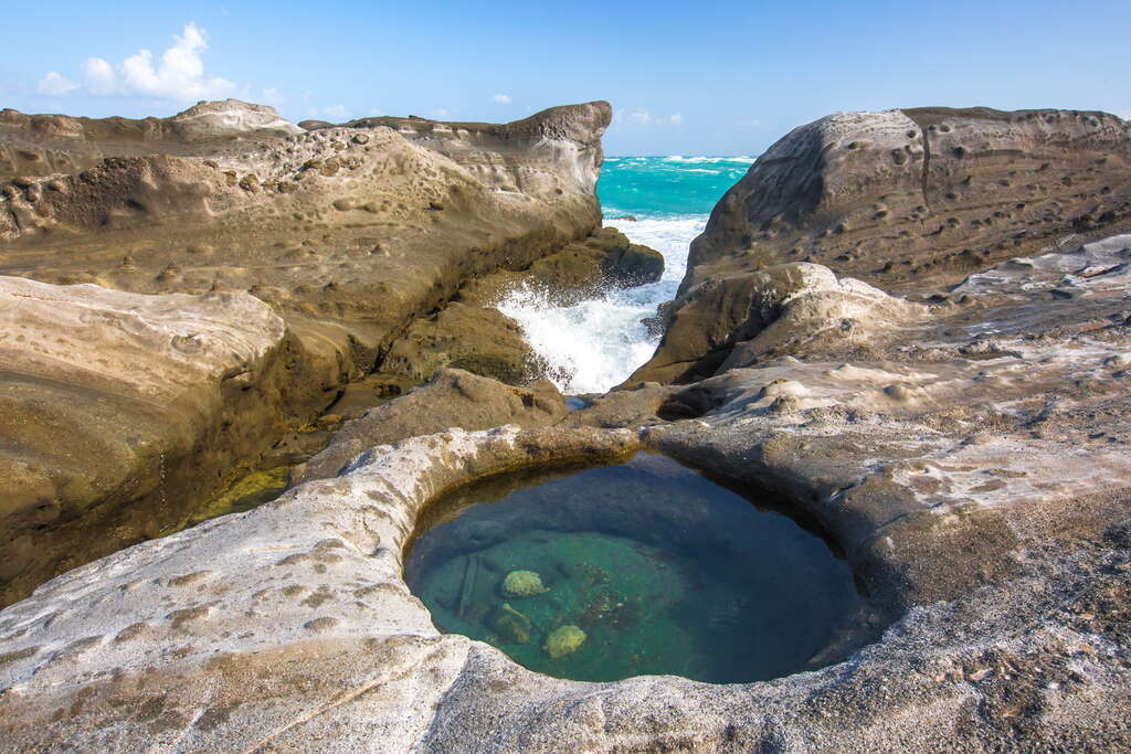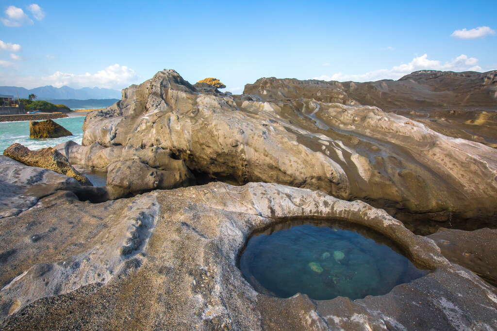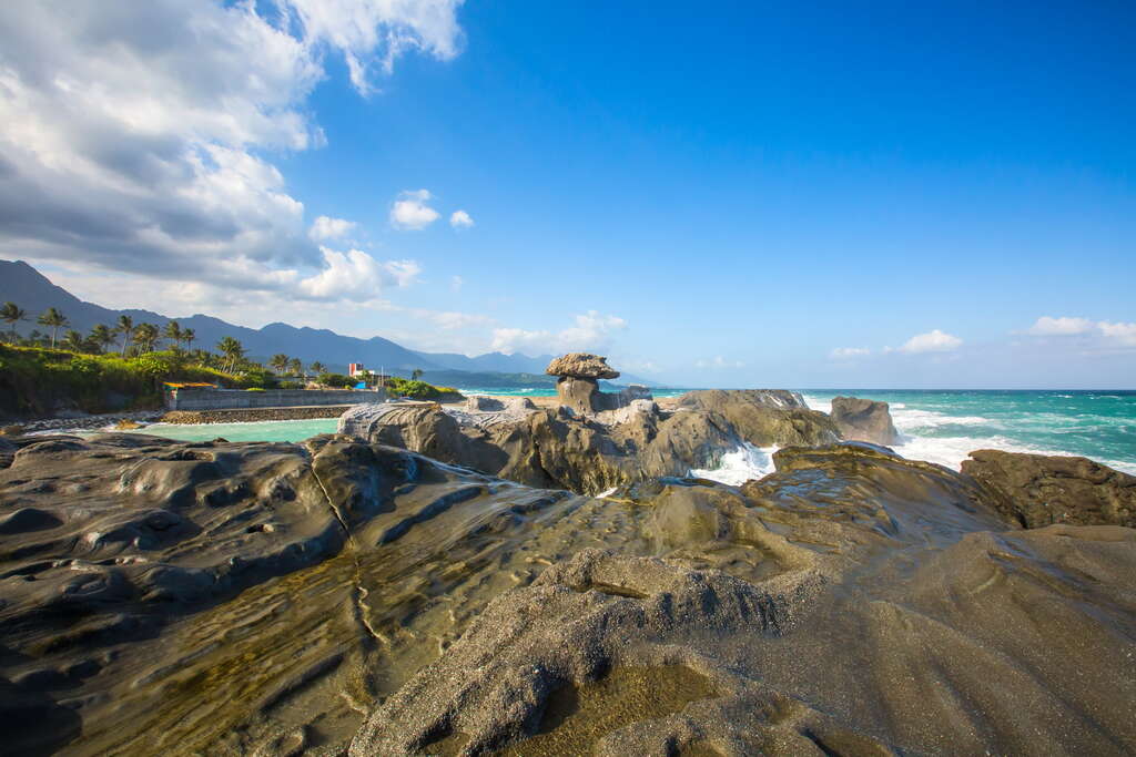 석우산휴향구의 동부해안국가경관관리소는 좋은 조망 발코니와 나무절벽길을 만드는 것에 대한 계획이 없다. 그저 관광객에게 바다와 하늘의 아름다운 경치를 감상할 ‘다리’를 제공할 뿐이다. 해면 위의 좁고 기다란 곶이는 해안침식 때문에 이어졌다 붙었다를 반복한다. 길이는 1km이며, 특이한 사항은 그곳에 많은 항아리 모양의 동굴과 해안 침식 동굴, 해안 침식문이 있다는 점이다. 소위 돌우산은, 우산모양의 해안침식기둥을 말하는 것이다. 과거에는 태풍 때문에 연거푸 무너져 내려서, 지금은 한 대밖에 남지 않았다.