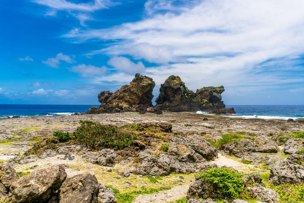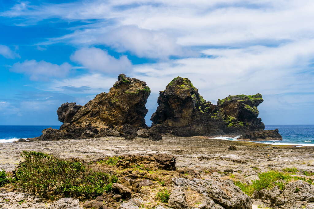 쌍사자바위는 많은 낚시 마니아들의 마음 속 꼭 한 번 가봐야만 하는 장소이다. 깊은 바다를 마주하고 있으며 형세가 험한데다 바위 표면엔 암초마저 가득하지만, 이 역시 이곳에 <낚시꾼일기>를 쓰러 오는 사람들을 막을 순 없다. 이곳 역시 란위에서 가장 유명한 관광지이며, 란위에 온 사람 중 이곳에서 기념사진을 찍지 않은 사람이 없다. 멀리서 바위를 바라보면 마치 두 마리의 사자가 서로 웅크리고 있는 듯이 보이며, 뒤쪽에는 아기사자가 뒤따르는 듯한 매우 귀여운 모양을 하고 있다. 이로 인해, 몇몇 사람들은 이 바위를 ‘웅크린 쌍사자’라고 부르기도 한다.