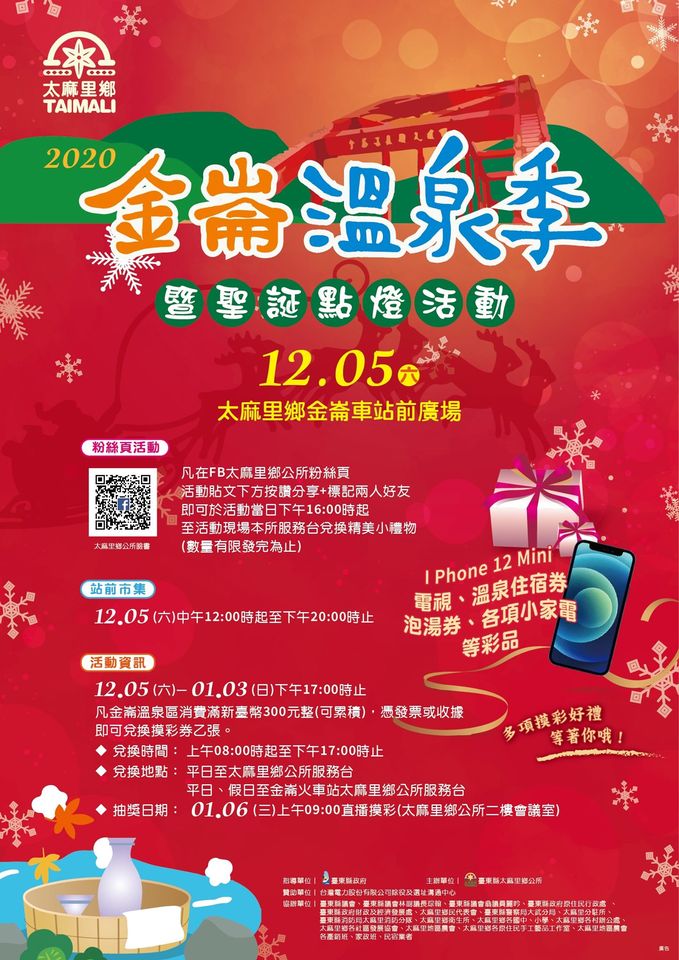抽奖日期: 01.06(三)上午09:00直播摸彩(太麻里郷公所二楼会议室)