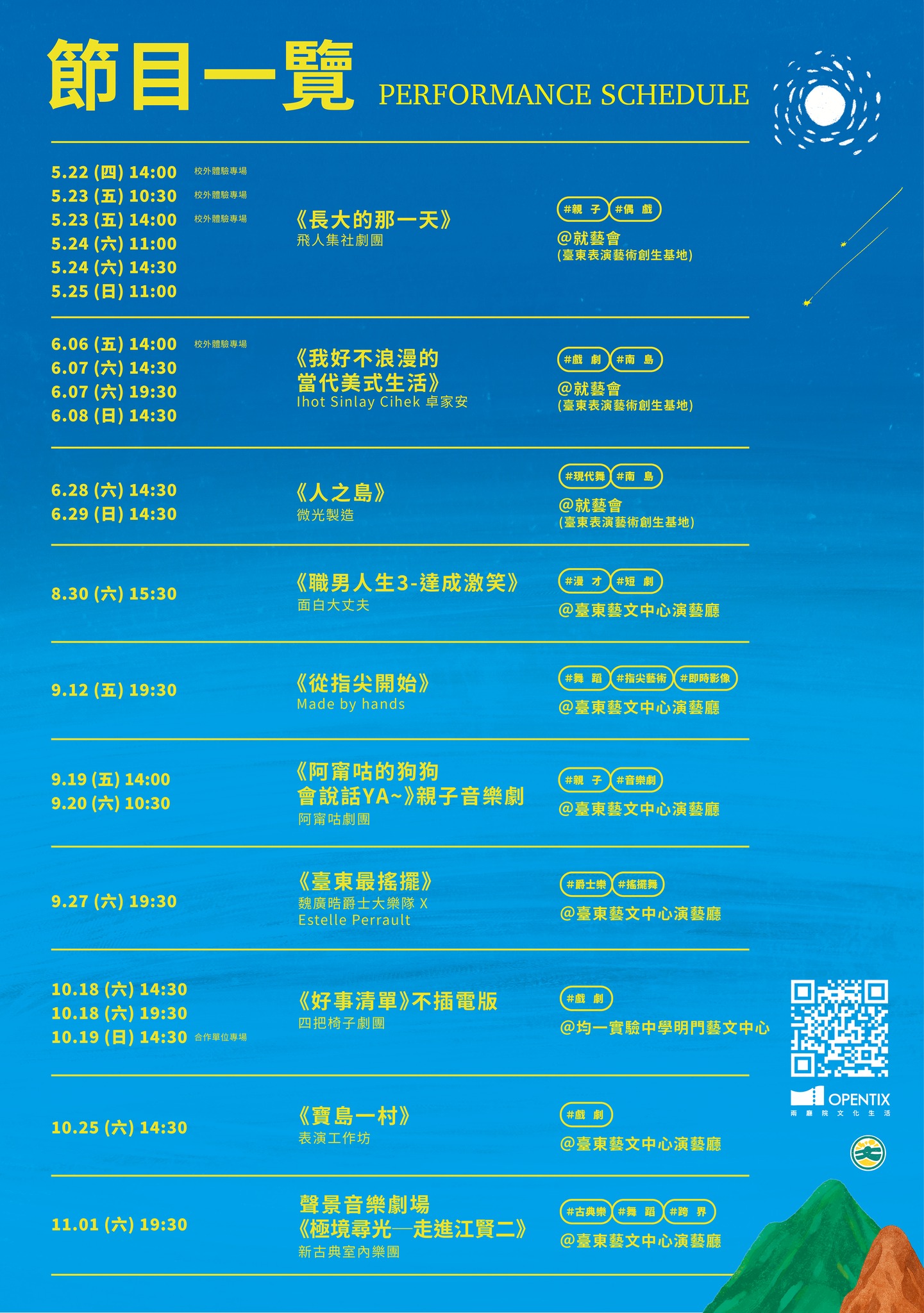 2025台东艺术节,将汇聚10个风格独特的演出节目,邀请观众一起重新思考自身与世界的关系,在艺术的交会点中,看见彼此、理解彼此,因为「没有人是孤岛」,我们终将在故事的流转中找到共鸣。在这次的故事里我们不只是一群观众,而是彼此故事里的角色——准备好启航了吗?