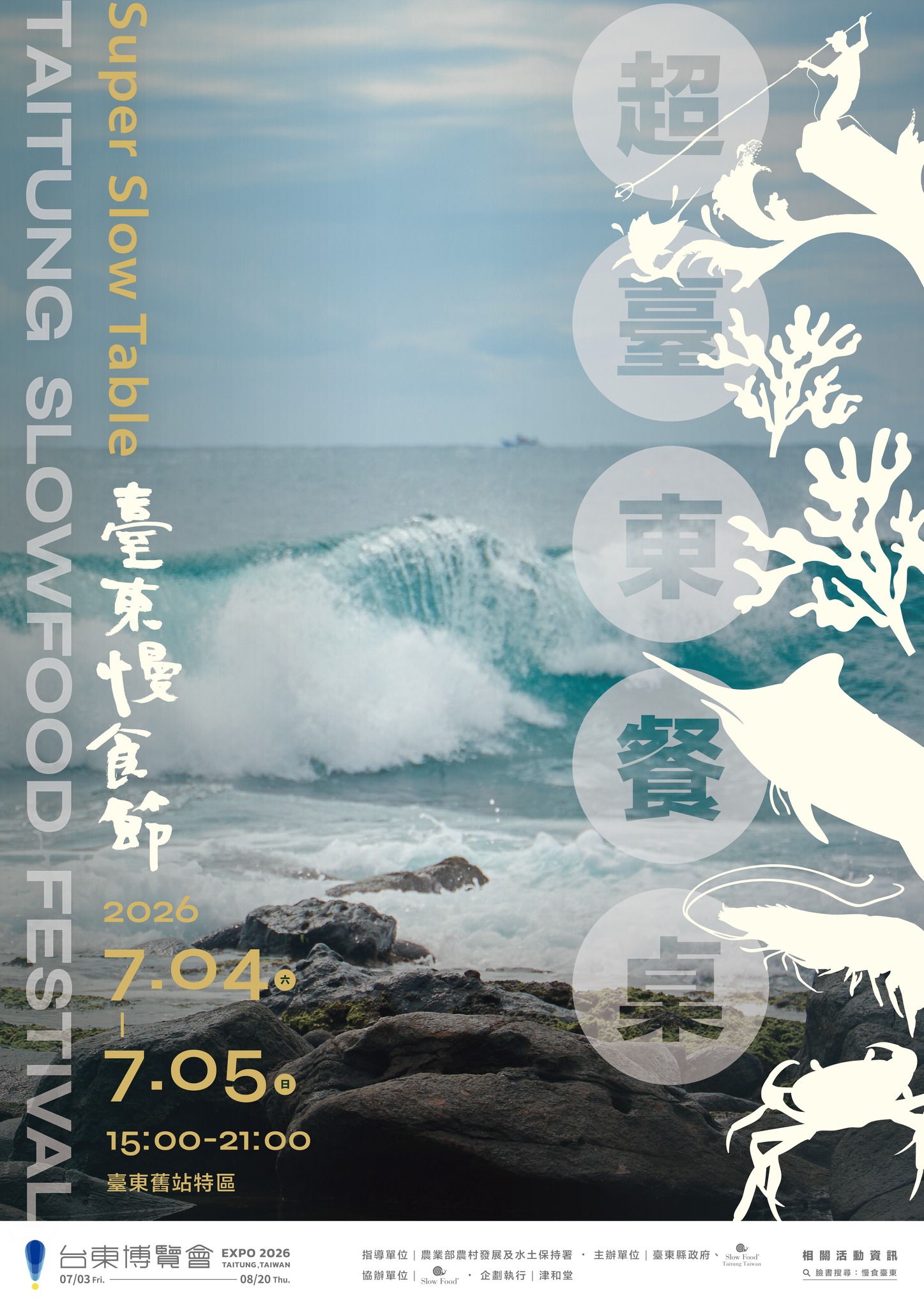 2026首场台东慢食节,将与 2026台东博览会 Taitung Expo 「 这超台东—未来超市 」一起,回到那些最能代表台东的物产,重新提问、重新料理,生猛地挑战特有物种的边际!
