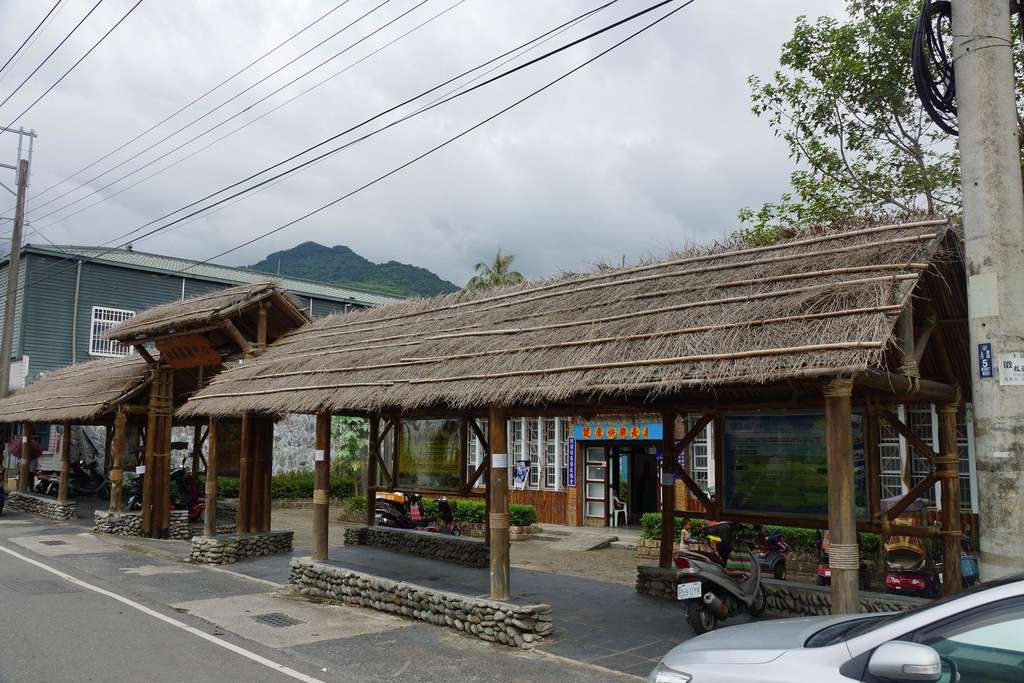桃源村入口有擺放原住民元素的展示品