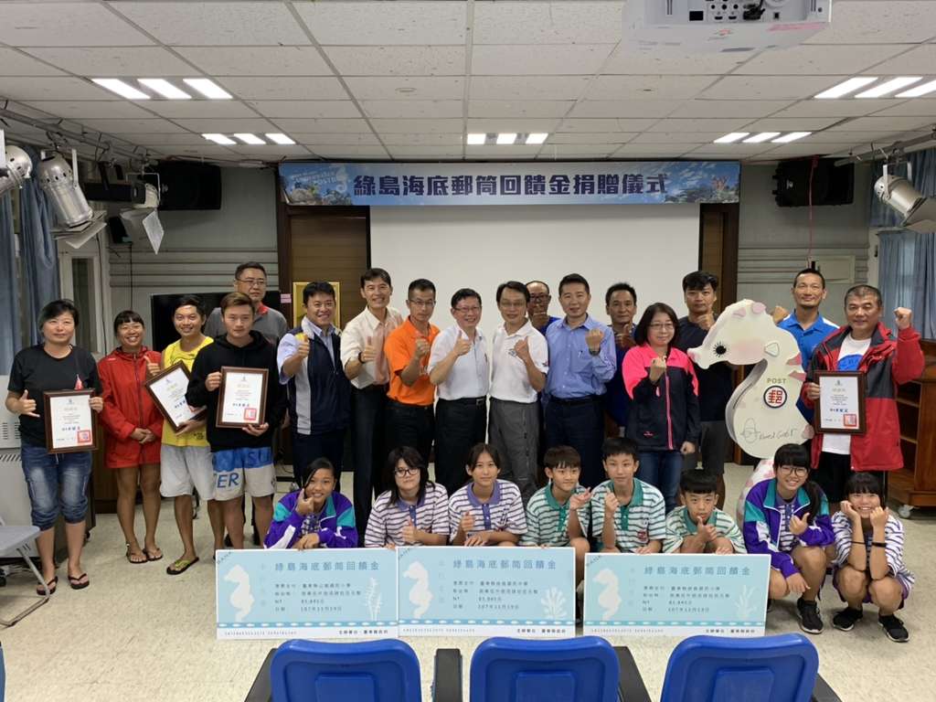台东县政府於今(19)日在绿岛国中举办「绿岛海底邮筒回馈金」捐赠仪式,由县府交通及观光发展处李志鹏代表捐赠新台币257,535元给绿岛国小、公馆国小及绿岛国中等三所学校,期盼於提升观光产业与经济规模同时,也能持续回馈绿岛并维护绿岛海洋生态环境。同时仪式中亦颁发贡献奖状予协助设置推广海底邮筒的在地业者,计有飞鱼潜水、怪兽潜水、大哥的故事等共9家在地知名潜店。