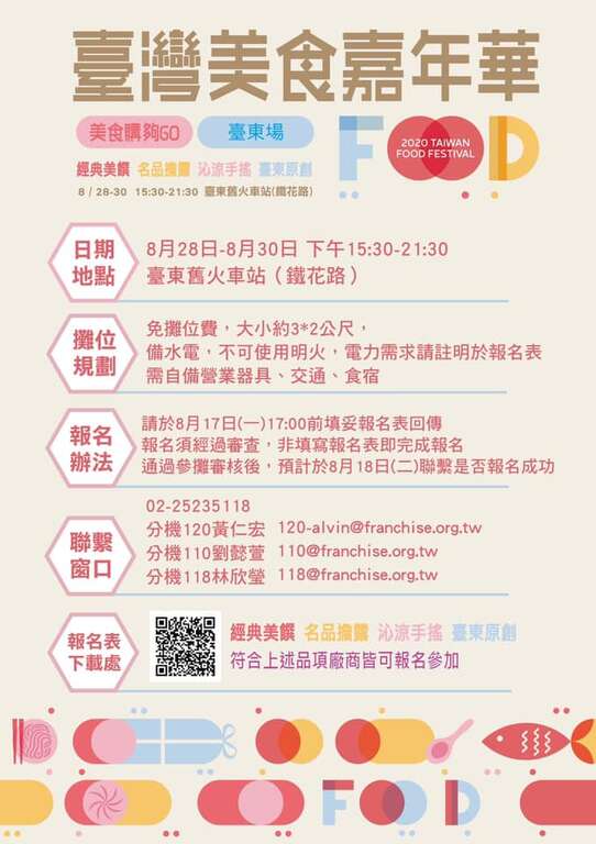 「109年度推动餐饮业振兴消费计画-台湾美食嘉年华-台东场」活动设摊招商即日起开放报名