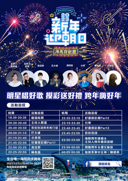 活动最新讯息请参阅 台东跨年晚会(原台东县岁末系列活动)FB网址:https://www.facebook.com/089.taitung.party