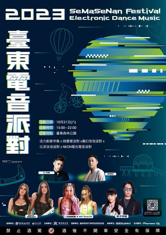 2023年10月台东掀起一股电音风潮,由台东县政府主办「2023 SeMaSeNan台东电音派对」受到全国电音乐迷关注,21日在台东森林公园点燃你的热情,活动从下午三点到晚上十点,泡泡、泳池、露营、萤光电音等多样派对,要为大家点亮夜晚,带来丰富多采的娱乐音乐盛宴。
