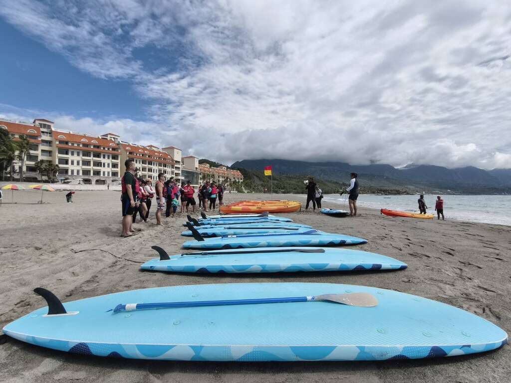 县府强调,巡逻员戒护范围是沙滩上2面红黄旗、海面上橘色浮球围出的范围,戒护范围内民众可进行沙滩戏水及游泳;戒护范围外是无动力水域游憩活动区域,有白色浮球标示无动力器具出入航道,可进行独木舟、SUP(立式划桨)、无动力小型帆船等,欢迎大家在安全情况下尽情玩水。