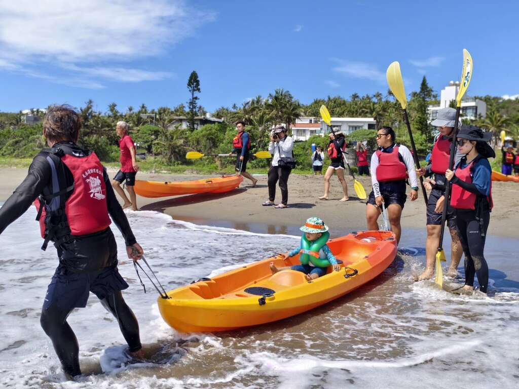 有别於一般水域安全教育以室内场地为主,2场杉原湾海域现场宣导玩水安全,从正确穿着救生衣、查看水域安全告示牌等安全行为开始,让民众跟着教练动作,学习掌握水域安全入门眉角,实际感受海边海浪和风的力量,在海洋中练习水域安全动作和进行SUP立式划桨、独木舟体验,享受乘风破浪的乐趣。参与民众反应热烈,台东紫萱草关怀协会、台东心新好客关怀协会参加,让身心障碍照护者、新住民亲子都能体验安全水域游憩活动,培养亲海亲水的兴趣。