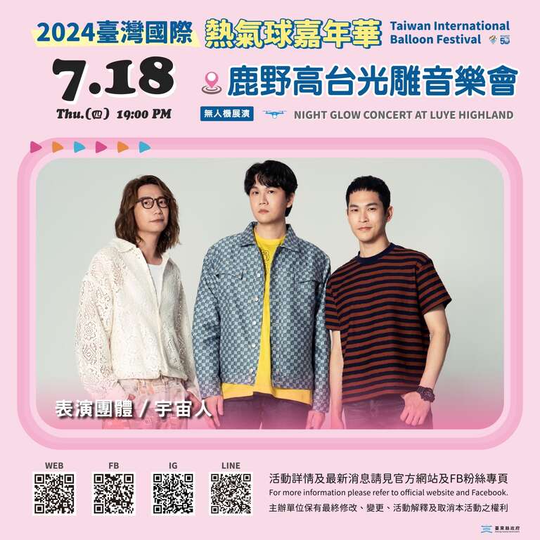 当天除邀请最受年轻人欢迎的流行音乐团体「宇宙人」演出,音乐会也将再度在鹿野高台上空,以无人机组成可扫描的QRcode条码,参与游客以手机扫描,即有机会获得官方限定版热气球小球。