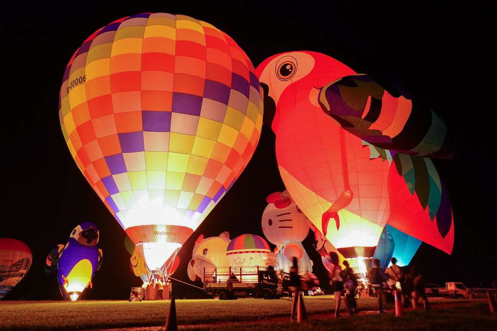 昨晚光雕活动以音乐「星期五晚上」热闹开场,台东在地团队「卑南青春歌队」及街舞团体「KEEP DANCE STUDIO」炒热现场气氛,球迷期待的热气球光雕音乐会以「海、陆、空之动物夜」为主题,由德国海豹奥斯卡、日本小熊猫、英国贝菈狗狗、巴西的鹦鹉等13颗热气球搭配无人机及烟火,地面热气球与空中无人机相互映衬,三丽鸥明星家族无人机图案搭配高空烟火绽放天空之际,现场欢声雷动,场面震撼人心。压轴演出由本土嘻哈天团玖壹壹唱出多首台式电音舞曲,现场粉丝留连忘返,连两天的热气球光雕音乐会也在全场观众欢呼雀跃中画下句点。