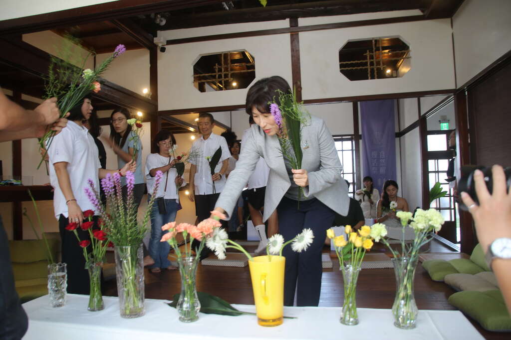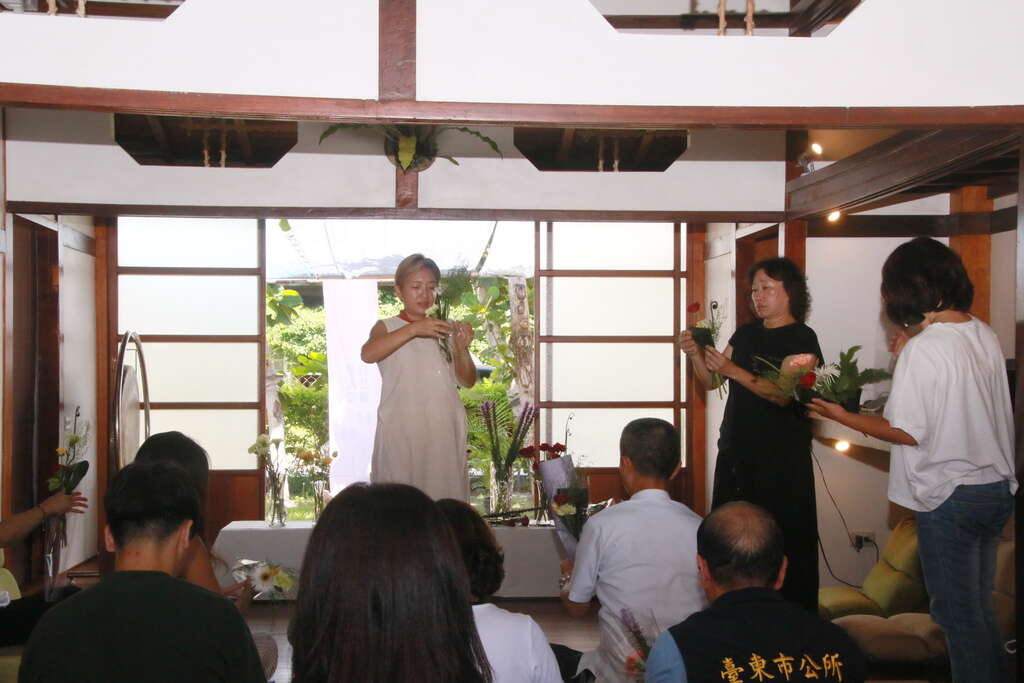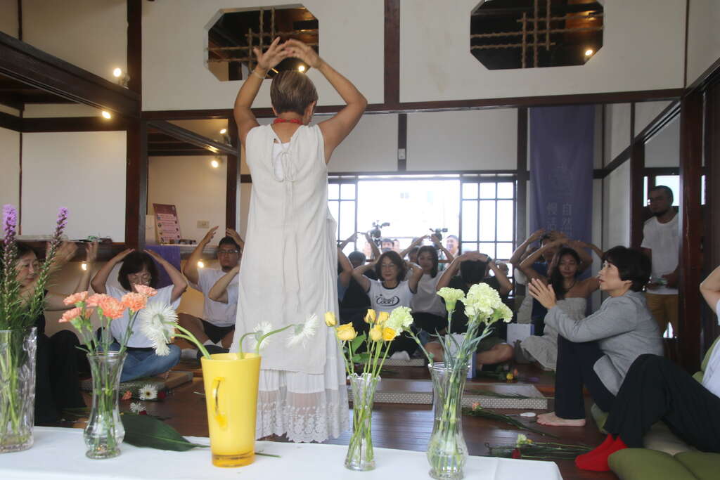 今日活动包括饶县长、黄建宾立委服务处陈德胜处长、县府社会处长陈淑兰、警察局长梁东山等皆受邀出席,在充满怀旧风情的日式建筑里,分享全台唯一身心灵休闲美学品牌「自然醒慢活祭」的故事,并於现场举办「花艺净心」、「铜锣浴」及「颂钵声波」等疗癒体验,透过地方疗癒讲师的引导,让贵宾们沉浸在静谧放松的氛围中,深刻体验台东疗癒人心的力量。