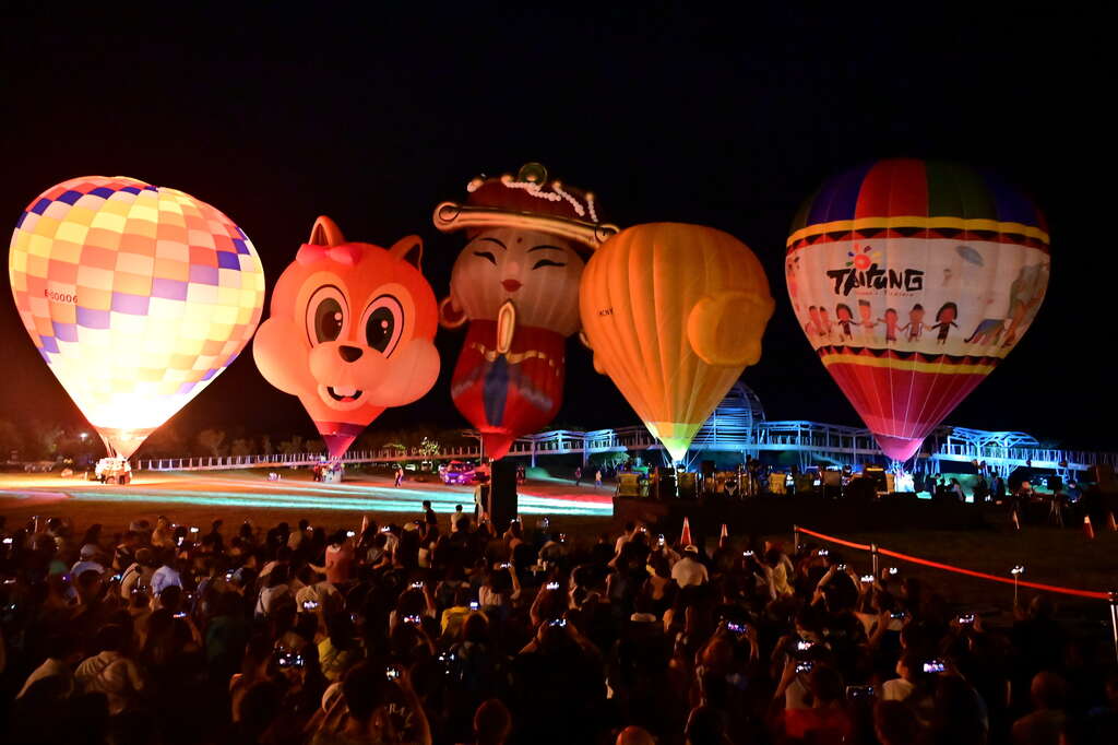 昨晚活动由台东在地「大地之舞」舞团带来的表演开场,紧接着新生代冲撞系情歌手邱军,以真挚又具穿透力的灵魂嗓音演出,大家最为期待的热气球光雕秀则由妈祖球带领花栗鼠小姐、COACH勇气球、彩虹球、台东球等五颗热气球结合「青春组曲」登场,热气球随着耳熟能详的节奏闪烁,搭配耀眼高空烟火秀惊艳全场观众,活动压轴由炙手可热的人气金曲乐团麋先生MIXER,透过独特的嗓音和爆发力十足的舞台魅力为活动画下完美句点。