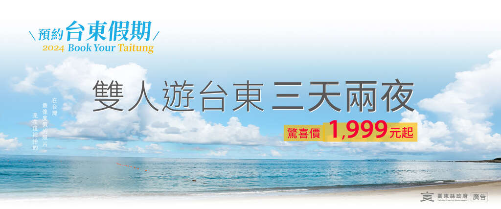 县府推出「预约台东假期」优惠限定专案,从9月5日起至11月25日止,预计有9,000位旅客享有奖励优惠,旅客参加任一套装行程,每人不设预约次数,立即享有「1,000元行程奖励金」,假日一样有优惠价格。台东县政府并纳入「生态永续」、「天然温泉」、「部落旅游」、「观星导览」及「农游体验」五大特色游程,保留旅客自由选择行程,推出双人行3天2夜最低1,999元起专案游程,每套行程含2晚住宿、主题半日游或台东特色体验,无论是自由行旅客或团体旅游,都能选择「预约台东假期」,体验多元在地性游程活动。
