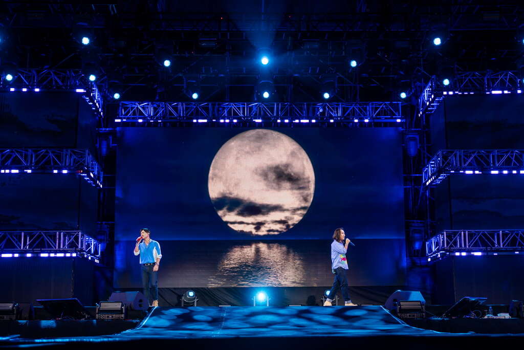 摇滚天团动力火车飙唱〈忠孝东路走九遍〉、〈当〉,两首经典K歌旋律一下就让全场回到那些岁月的音乐时光,万人大合唱神曲〈我很好骗〉更让台下男粉丝们唱得撕心裂肺;心灵系歌后万芳与台东相当有缘,不仅曾在当地Long stay生活、去年还特别举办专场演唱会缔造秒杀,每次回到台东都有许多在地好友特地组团力挺,她用歌声演唱〈孩子气〉、〈模样〉、〈Love Yourself〉做为最好的祝福,把招牌歌〈新不了情〉作为压轴献唱,带领大家重温华语金曲的美好年代。