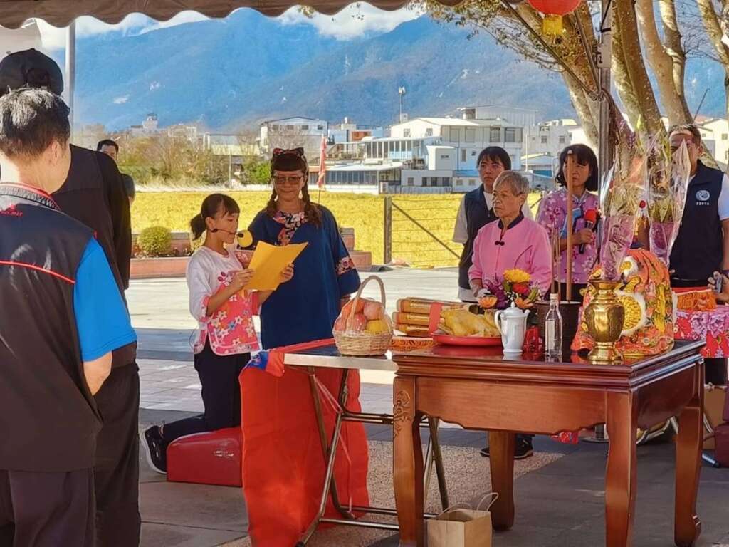 上午在池上乡福德宫热闹举办「祈福祭典」,全程采传统客家完福祭典仪式进行,由福原国小学生担任礼生,以客语吟诵疏文,欢庆今年土地丰收,并祈求来年风调雨顺、五谷丰登。到场的民众不仅能体验客语祭典仪式,还有精彩、热闹的掷筊大赛,让大家带着祝福与礼品喜悦回家。