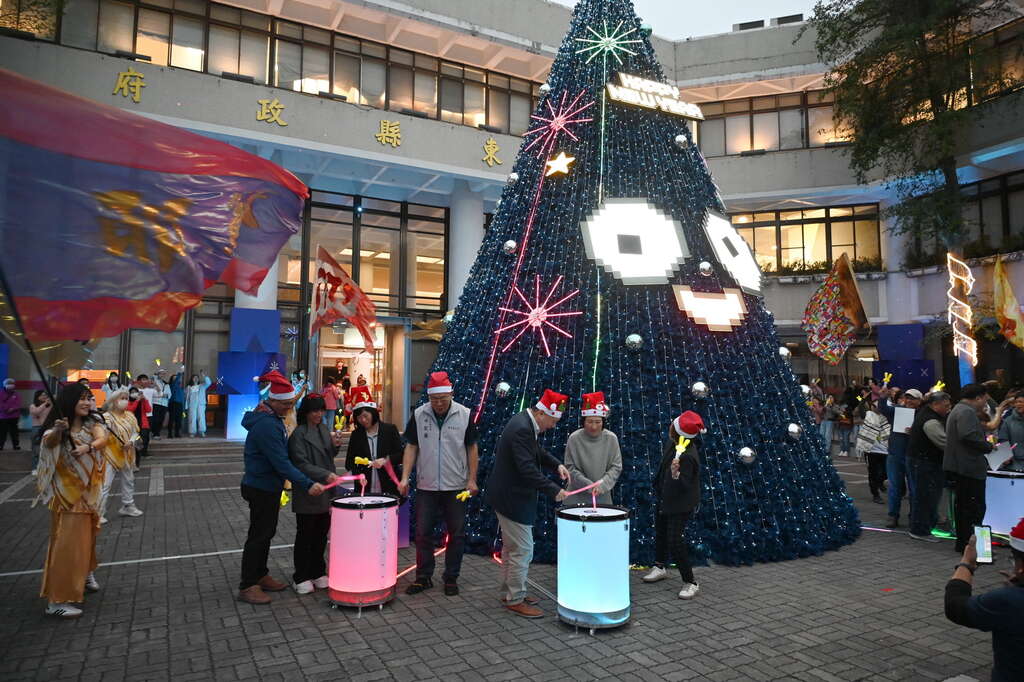 为迎接一年一度的圣诞佳节,台东县政府在县府广场设置圣诞树,增添节庆氛围,并在16日晚间举行点灯仪式,吸引近3百位县民与县府同仁参加,不少是家长带领孩子一同共襄盛举,由县长饶庆铃担任主点灯人,与县民一同点亮璀璨的圣诞树,并祝愿新的一年平安顺遂,也欢迎各地民众来台东泡温泉、赏灯、欢度圣诞及跨年。