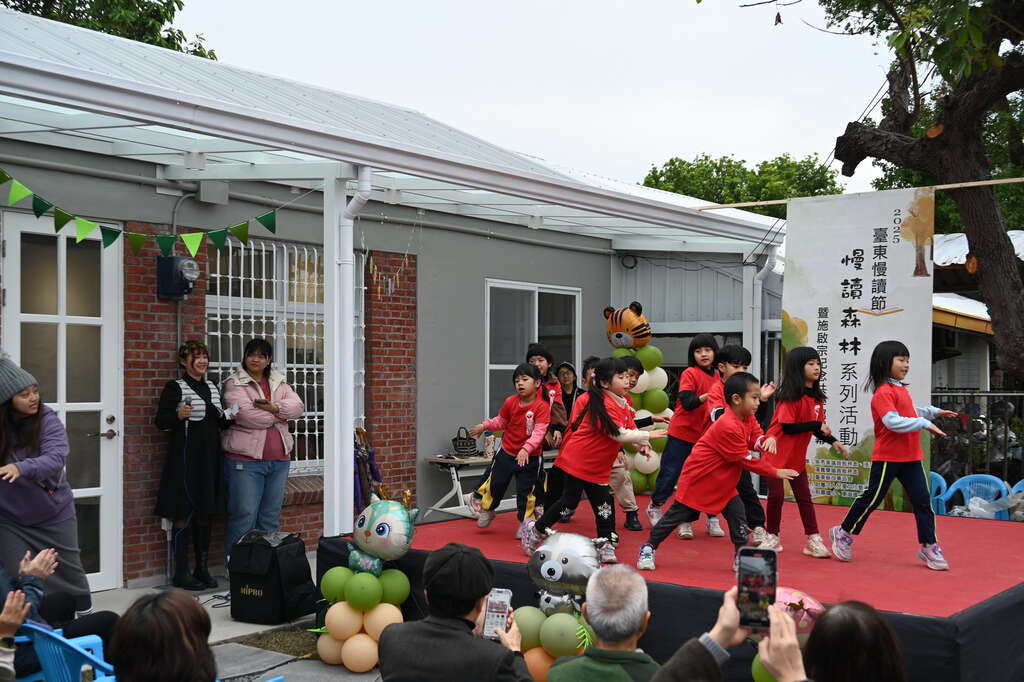 以打造「一本书,一棵树,慢慢读成一座森林」为概念,由台东县政府结合台东县故事协会、财团法人儿童文化艺术基金会办理「2025台东慢读节:慢读森林系列活动暨施启宗纪念共学馆」开幕活动,今(18)日在施启宗纪念共学馆举行,活动内容有利嘉幼儿园小小兵舞蹈演出、东海国小师生共创绘本《来当我的邻居吧》新书发表、亲子五感体验、美吉克魔术艺术团队带来的泡泡派对等精彩活动。县长饶庆铃饶庆铃期许透过慢读节引领更多县民享受阅读好时光。