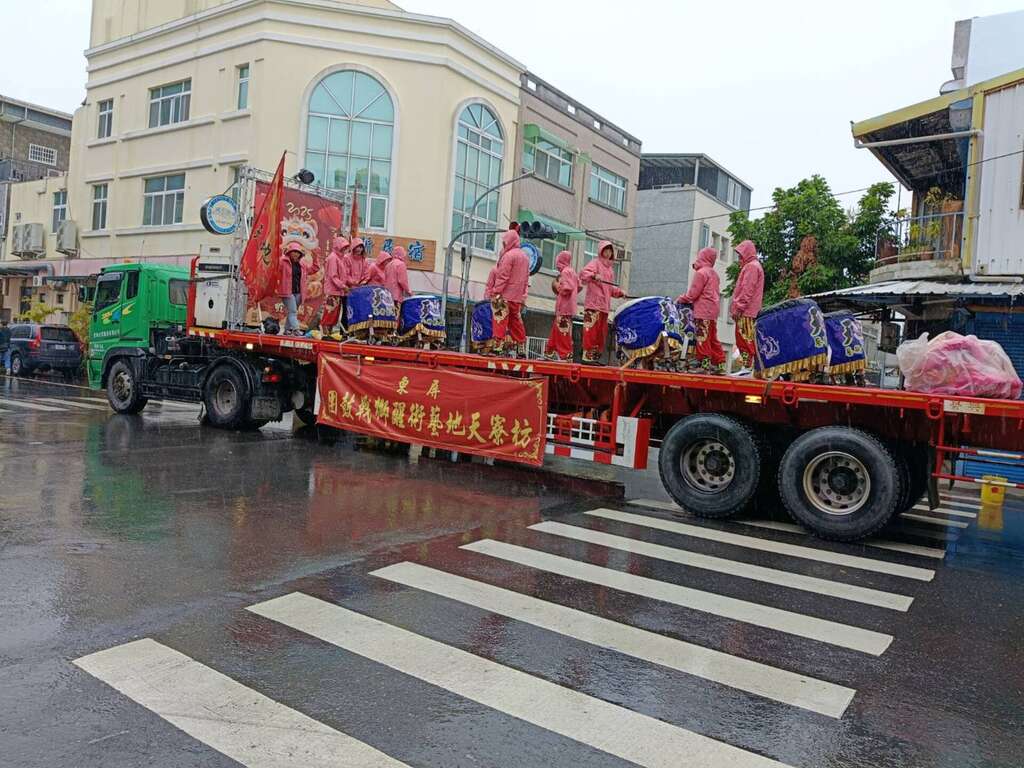 13日12:00四维路集合,12:30出发游行台东市区南北向街道:四维路一段→右转博爱路→右转中正路→左转更生路→左转四维路三段→左转新生路→左转广东路→左转正气路→右转中山路→右转大同路→左转广东路→左转中正路→右转光明路→右转宝桑路→右转广东路→左转仁爱街→天后宫进庙。