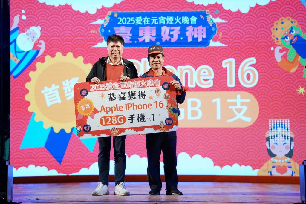 另外,今年「爱在元宵抽奖活动」特别引人注目,丰厚奖品吸引许多民众同乐,也为元宵夜增添了惊喜与乐趣,现场设置的爱神市集与爱神餐车,为民众提供吃喝玩乐的全方位体验,让每个来宾都感受到台东的热情与活力。最令人期待,被选为全台必看元宵烟火之一,长达420秒的晚会高空闭幕烟火秀,点亮整片夜空,伴随着众人一阵阵的惊呼赞叹声,精彩落幕。