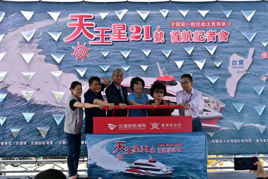 县府今日举办首航记者会,饶庆铃提到,绿岛及兰屿的居民日常往返或旅客观光皆高度依赖海运,为了改善离岛船班的搭乘品质及安全,提升台东往来绿岛、兰屿交通便利性、舒适度,台东县政府积极鼓励业者采购新船、汰换旧船,在与交通部航港局的合作努力下,成功向中央争取补助款3亿元,推动汰换5艘服务超过25年的老旧客船,今年预计有3艘新船将陆续加入航行。全台第一艘民船汰旧换新的「天王星21号」於2月底抵达台湾,广受各界期待,今日正式投入营运。