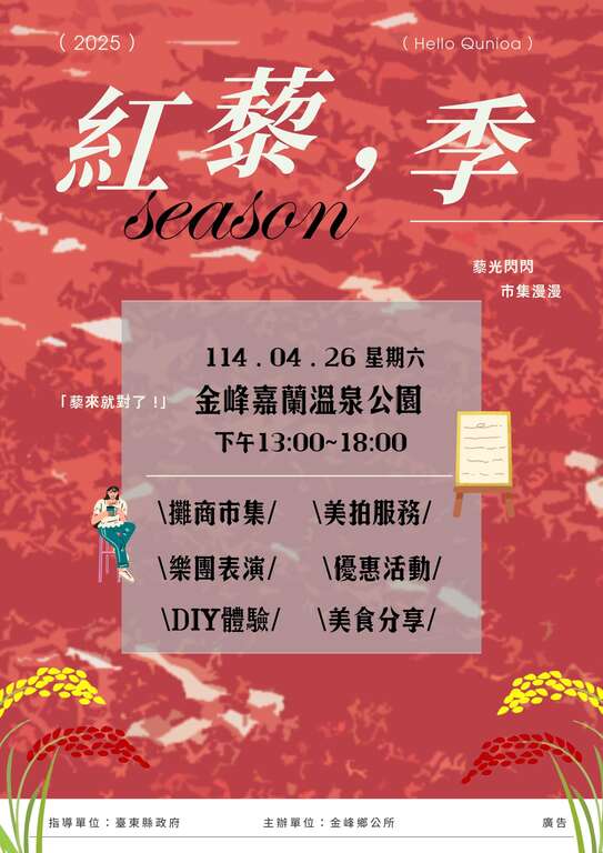 【「2025红藜季 想念藜」金峰乡红藜音乐市集】4/26嘉兰温泉公园不见不散!!