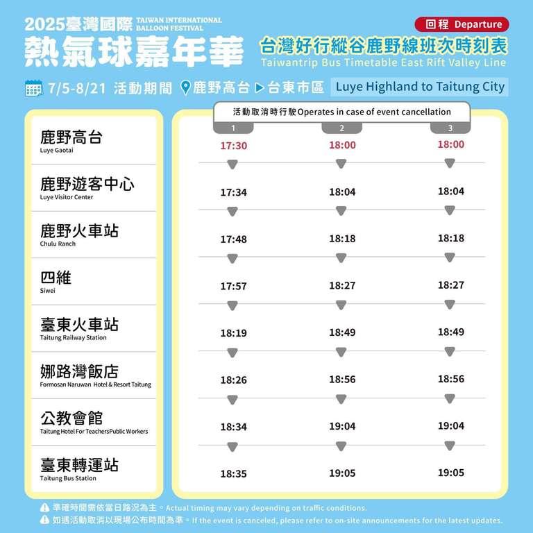 活动接驳巴士配合热气球活动取消,将一并停驶!