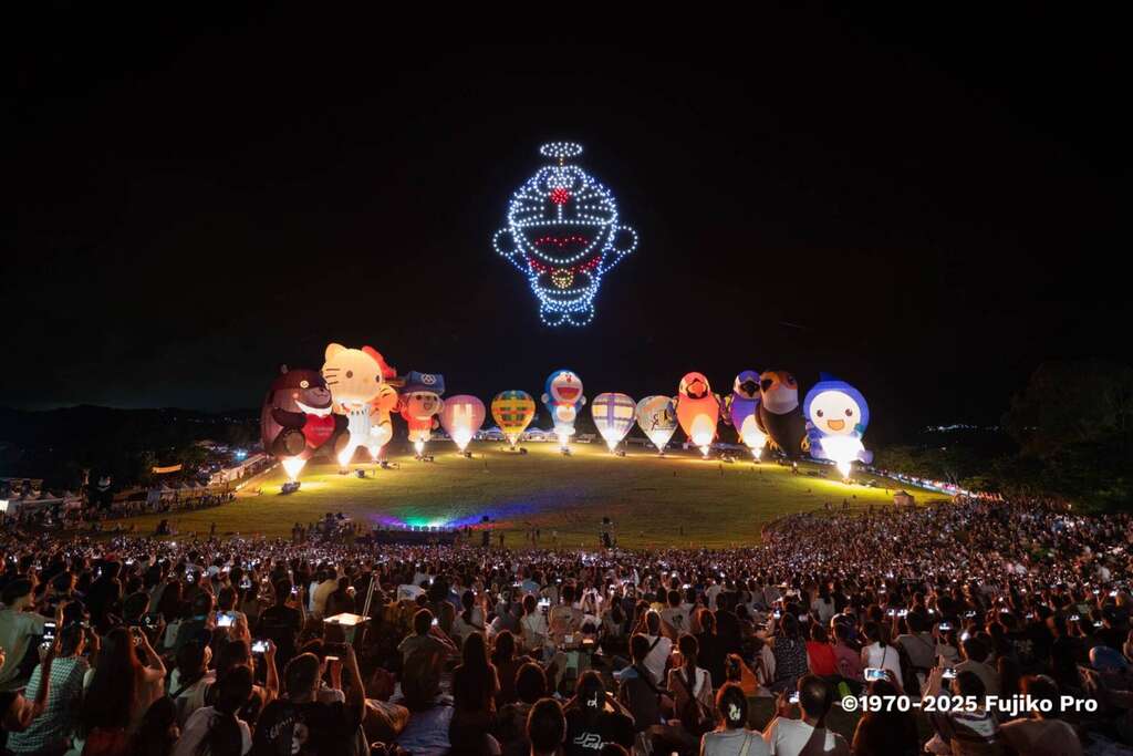 紧接而来的重头戏由13颗热气球接连登场,以超人气哆啦A梦热气球为首随音乐与无人机和烟火相互映衬展演,当哆啦A梦主题曲的旋律响起,轻快的旋律瞬间穿越时光,唤醒了每位观众的回忆。无人机主题首度亮相,哆啦A梦、大雄、静香、胖虎与小夫伴随着音乐出现在鹿野高台夜空中,一场充满共鸣的声光飨宴惊艳全场。