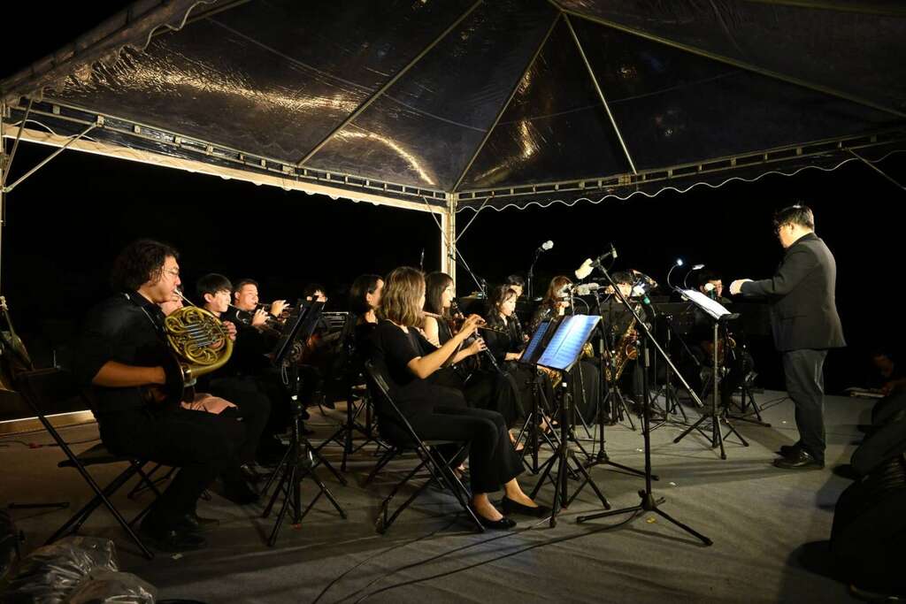 活动由在地鹿角乐团开场,以原民欢乐曲风为音乐会暖身;加走湾少年合唱团的组曲、歌声,唤起观众对台东土地与自然的深刻情感;高雄市管乐团磅礡编制,以跨越经典西洋金曲、亚洲演歌、华语流行等多元曲目,让现场游客享受古典与当代流行交融的音乐盛宴。