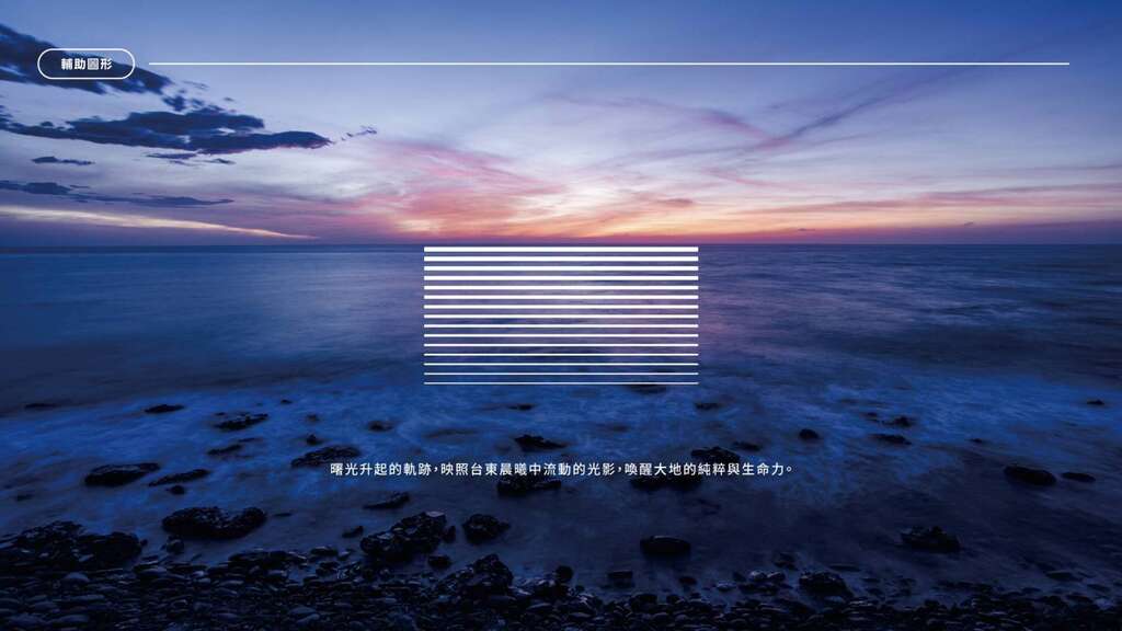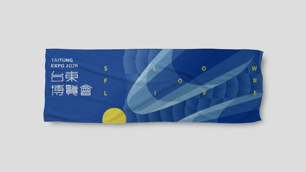 辅助图形则延伸自主标志意象,透过流动曲线与线条密度的层次编排,转化台东绵延壮丽的山峦、翻涌奔腾的海浪,以及热气球於山海间缓缓升起的姿态,营造出与自然相映的静谧美感,进一步深化整体品牌视觉语言的叙事层次。
