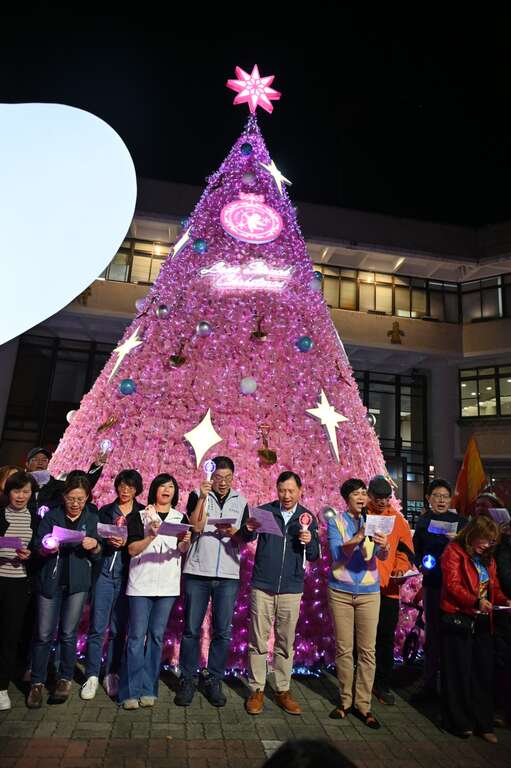 活动由副县长王志辉与县府团队、贵宾共同启动点灯,粉红圣诞树随即闪耀夜空,现场一片温馨。王副县长及民政处林宏义处长带领同仁、联祷会牧师,发送圣诞小礼物给现场来宾,与大家共享节日的喜悦,并在彼此互道佳节愉快及欢乐的气氛中结束点灯仪式。