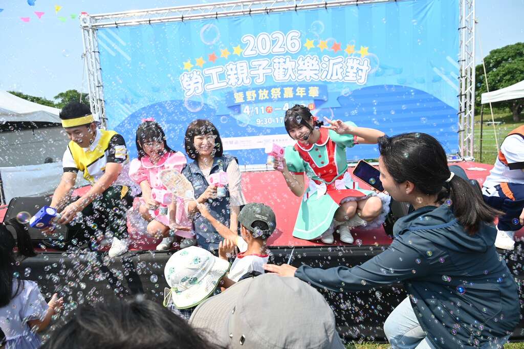 为感谢劳工辛勤付出,促进亲子情感交流,台东县政府结合台东县总工会於今(11)、明两天在森林公园举办「2026劳工亲子欢乐派对暨野放祭嘉年华」,邀请YOYO哥哥姐姐与国际卡通明星表演、亲子游乐设施、美食摊商、二手市集,以及今年全新推出「野放祭」,吸引逾2,000位大小朋友同乐。