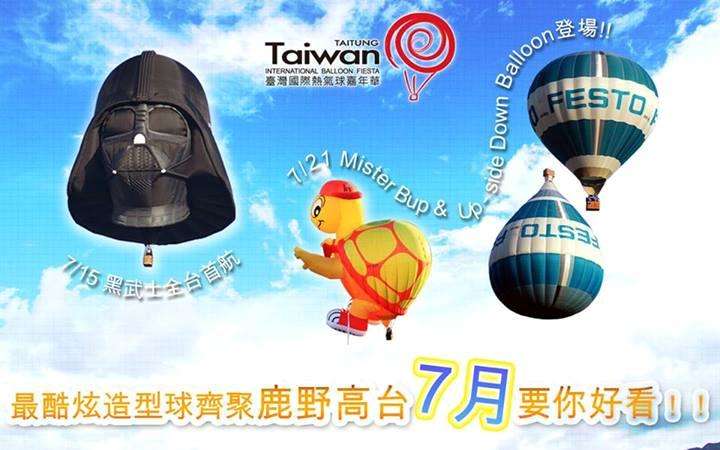 2O13台湾国际热气球嘉年华会活动期间长达72天,活动期间有各式各样造型球陆续粉墨登场,继愤怒鸟、蛋糕球、SnoBird等陆续到访鹿野高台後,7月紧接着「黑武士造型热气球」即将於7月15日清晨五点现身在台东鹿野高台与大家见面,主办单位特别邀请到「维德之拳」专业级星际大战帝国角色扮装的世界性组织-第501师台湾驻军及香港驻军成员,於7/20日及7/21日两天在台东鹿野高台,以全副盔甲装扮出席活动会场与民众同乐,另外,可爱「乌龟」造形球及「上下双胞胎造型球(Up-side Down Balloon)」也将於7/21日起登场亮相。