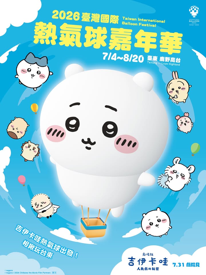 嗚哇哇—嗚哇哇——沒錯!就是這群又小又可愛的傢伙們要來台東啦 今年暑假台東「討伐任務」就是要揭開即將在7月登場的《劇場版 吉伊卡哇 人魚島的秘密》~~~準備好與小可愛們一起登島! 還有還有! 𝟰/𝟭𝟭(六)𝟭𝟵:𝟬𝟬臺東縣立體育場熱氣球國際記者會 吉伊卡哇、小八貓、兔兔都會來到現場( ˃᷄˶˶̫˶˂᷅ ) 熱氣球+無人機展演+人偶見面會! 你沒聽錯 全台第一場的《劇場版 吉伊卡哇 人魚島的秘密》人偶見面會 趕快訂機票、車票、住宿 吉伊卡哇真的要來了 現場還會開放大家近距離拍攝三位小可愛! 你還不來嗎? 𝟮𝟬𝟮𝟲 臺灣國際熱氣球嘉年華 ▸ 𝟳月𝟰日-𝟴月𝟮𝟬日|鹿野高台 ▸主辦單位保有最終修改、解釋及取消本活動之權利 《劇場版 吉伊卡哇 人魚島的秘密》 ▸ 7月31日-全台上映 #熱氣球嘉年華 #台東旅遊 #劇場版吉伊卡哇人魚島的秘密 #0731全台上映 - 2026-03-29