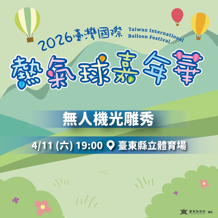 齁!這不是愚人節玩笑!知道大家的期待值已經破表 小編整理𝟯個重點,幫球迷和粉絲解答!!! 造型熱氣球/追球日誌 ◍IP主題造型球:正在努力生產中!預計在活動期間,於鹿野高台正式跟大家見面! ◍追球日誌:持續規劃中!有最新消息小編會盡速公告! 熱氣球國際記者會 ◍ 𝟰/𝟭𝟭 (六) 𝟭𝟵:𝟬𝟬 將於臺東縣立體育場舉辦,詳細活動流程敬請鎖定粉絲專頁 光雕音樂會/無人機展演資訊 ◍無人機展演、光雕音樂會:場次將於𝟰/𝟭𝟭 (六) 國際記者會中一併公告。 ◍表演卡司資訊:眾所期待的卡司名單正緊鑼密鼓敲定中,敬請期待! 小編提醒:請大家持續追蹤官方專頁,搶先掌握第一手情報🫡 𝟮𝟬𝟮𝟲 臺灣國際熱氣球嘉年華 ▸𝟳月𝟰日-𝟴月𝟮𝟬日|鹿野高台 ▸主辦單位保有最終修改、解釋及取消本活動之權利 - 2026-03-31