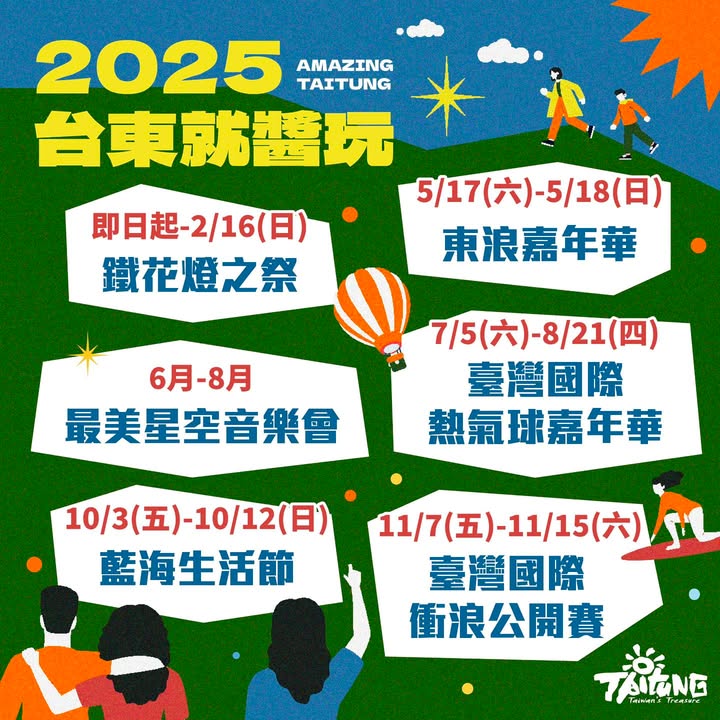 2025台東活動大公開!全年精彩活動一次看 東浪嘉年華、熱氣球開幕484要手刀訂住宿? 台東整年都好玩 按讚+分享,跟著就醬玩! #台東 #台東旅遊 #台東旅行 #台東就醬玩 #熱氣球 #東浪嘉年華 #鐵花燈之祭 #最美星空 #藍海生活節 #衝浪 - 2024-12-28