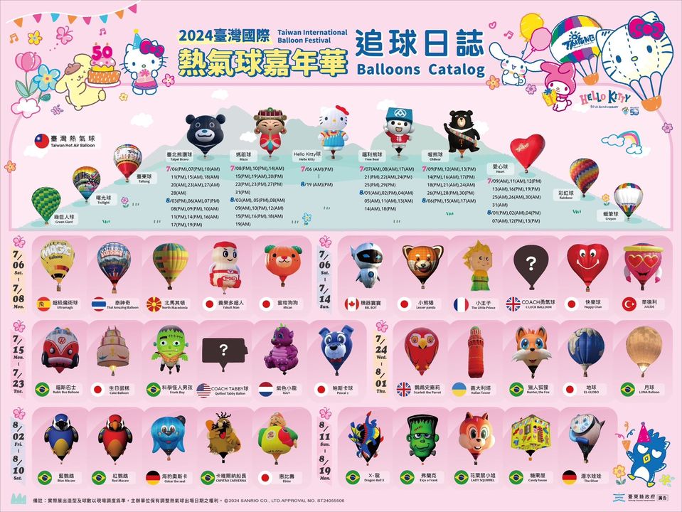 ⊹大會報告!追球日誌已抵達!⊹千呼萬喚的追球日誌出爐囉 超可愛的𝐇𝐞𝐥𝐥𝐨 𝐤𝐢𝐭𝐭𝐲每天都會跟大家見面 7/6-8/19每天上下午場次都有(>́ꇴ 還有每週都會推出各式各樣的國外造型球(要注意出場日期哦!) 一起來到鹿野高台幫𝐇𝐞𝐥𝐥𝐨 𝐤𝐢𝐭𝐭𝐲慶生 大家要 #注意造型球的露出日期及時間! AM是上午場次會出現 · PM是下午場次會出現 告訴小編!有沒有你喜歡的球呢 小編已經迫不及待想跟他們見面拉(尖叫~~) 臺灣國際熱氣球嘉年華 我們7/6-8/19台東鹿野高台見 快右鍵、長按收藏起來吧| ᐕ)⁾⁾ 順便分享出去給你的朋朋 - 2024-06-13