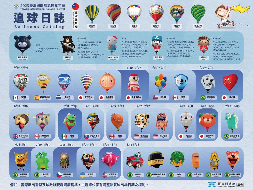 眼尖的各位球迷看這張圖找找看有什麼不同之處呢 追球日誌有更新唷! 猜猜看小編在追球日誌 加了什麼好料呢? 今夏最夯熱氣球怎能錯過呢 快!呼朋引伴一起出發~~ 來看看來自日本的「小幌精靈」 超Q的造型熱氣球輪番上場 等著球迷朋友們一起合照唷 ! 活動免費入場唷 線上預約名額目前全數完售 *若有多餘票券釋出將另行公告* 現場購票|上午5點、下午4點 活動日期|6/30-8/28(每天) 上 午 場|05:30-07:00 下 午 場|17:00-18:30 活動地點|鹿野高台 —— #活動時間以外沒有熱氣球喲 #臺灣國際熱氣球嘉年華 #活動追球日誌 #臺東鹿野高台 - 2023-06-06