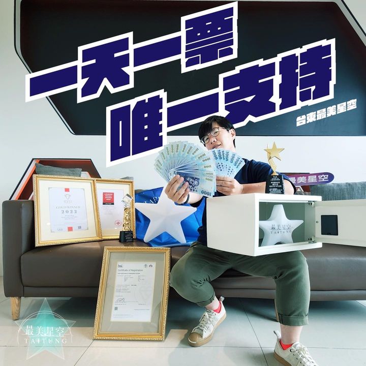 一天一票,請支持台東在觀光亮點獎勇奪勝利!小編緊急跟台東最美星空要照片!!因為台東最美星空加碼抽旅遊金!!但不要忘記還有慢食節跟紅烏龍! 您的支持,就是我們勇往直前的動力!請支持一天一票,星空、慢食節、紅烏龍! - 2023-05-12