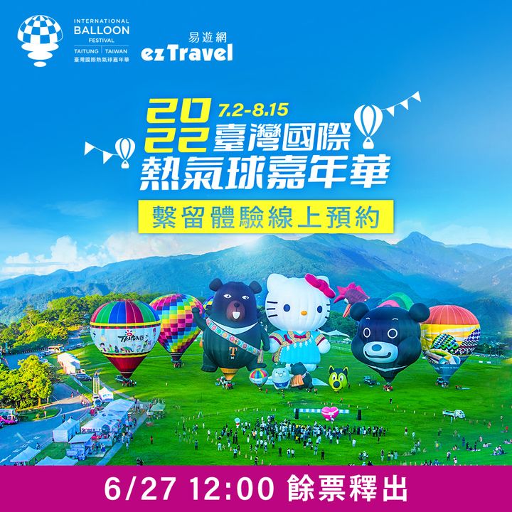 之前沒有預約到繫留的朋友們別傷心現在還有機會! 【6/27 12:00清票釋出】 購票預約往這邊 https://bit.ly/3P60ylU 【熱氣球繫留體驗預約】 熱氣球繫留體驗是以繩子固定熱氣球定點升降的高空冒險 7/2-8/15,每日上午場(05:30-07:30)與下午場(17:00-19:00) 體驗地點:臺東縣鹿野鄉鹿野高台 預約平台:臺東慢遊趣網站 https://bit.ly/39Abqb7 售價:週一至週四550元,週五至週日及國定假日650元 每筆訂單限購2張 7/2配合開幕,僅提供下午場次體驗 購票後仍需視體驗當日天候情況而定 . 【購票攻略】撇步往下看 先註冊預約平台會員,直接登入快速購票 記得一定要1⃣先選場次、2⃣再選日期 綁定行動支付(LINE Pay、Apple Pay、Google Pay)結帳超迅速 . 【解惑小天使】 如有繫留體驗預約訂購相關問題,歡迎洽詢客服 ️ 客服專線:02-412-8001(服務時間07:30-22:00) ️ LINE線上客服:請搜尋 @eztravel.com #臺灣國際熱氣球嘉年華 #臺東慢遊趣 #熱氣球繫留體驗預約 - 2022-06-27
