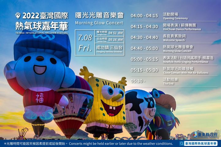 【不畏颱風!7月2日仍會如期舉行】近日小編頻頻收到大家詢問颱風「芙蓉」攪局的煩惱 擔心旅程去不了️不怕,給你帶來好消息️ 經熱氣球團隊謹慎評估天氣預報 7月2日 上午5:30開幕自由飛 下午7:00光雕音樂會 目前仍會如期舉行 20顆國內外熱氣球將在開幕的清晨及晚間 為你送上滿滿福 還有 年度最強嘻哈歌手 #OSN高爾宣 也將來到鹿野高台,和你一起高聲尖叫 享受暑期在最炸的活動! 面對疫情影響,熱氣球團隊盡力回應大家的期待 讓象徵希望的熱氣球升空,以熱氣球為全國加油 你!準備好了嗎! 想了解更多熱氣球資訊 快來加入我們 LINE官方帳號 — https://lin.ee/1ftcKtA 官方網站 — https://reurl.cc/A7aZke 官方IG — https://reurl.cc/e3V00L #活動倒數2天 #臺灣國際熱氣球嘉年華 #開幕系列活動蓄勢待發 - 2022-06-30