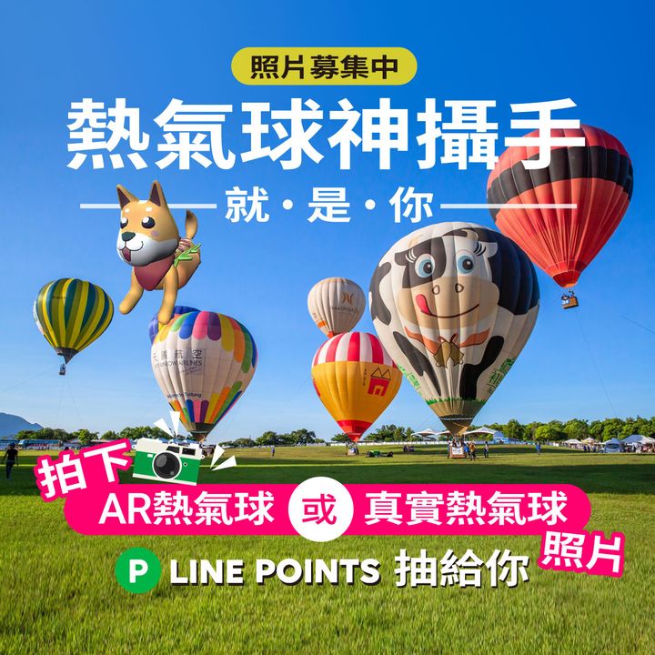 照片募集中熱氣球神攝手就是你 不管你是 在家裡與可愛的AR熱氣球合照 在台東與美麗熱氣球合照 只要你覺得照片夠美夠有創意 🖼歡迎在底下留言神攝手的照片 讓大家一同見識看看 誰是熱氣球神攝手 照片需求看這裡下面兩種擇一即可 AR熱氣球合照 1. 下載 #旅行台東APP http://tour.taitung.gov.tw/go/MQr6vrBZ 2. 點擊APP首頁🕹進入「熱氣球追緝令」遊戲 3. 完成追捕後至「我的背包」與熱氣球來張合照 現地熱氣球合照 到 #2022臺灣國際熱氣球嘉年華 拍下你最自豪的熱氣球美照吧🕶 即日起至8/15前 STEP.1 按讚+公開分享本篇貼文 STEP.2 看你留下甚麼照片 AR熱氣球合照留言「我是AR熱氣球獵人!」+照片+標記一位好友 譬如✏我是AR熱氣球獵人! @台東球 現地熱氣球合照留言「我是熱氣球神攝手!」+照片+標記一位好友 譬如✏我是熱氣球神攝手! @台東球 就有機會抽中LINE POINTS 50點 共送出20份 AR熱氣球特別獎跨加 只要你是跟AR熱氣球合照 即可有機會加碼抽中LINE POINTS 100點 共送出5份 不可重複留言 請標記認識的人,勿造成別人困擾 快揪上親朋好友一同來當熱氣球神攝手 活動辦法 #不可重複留言,同一帳號僅可獲獎一次,且得獎帳號及被標記者不得為假帳號或分身/人頭帳號。 中獎人須於2022/8/31(三)前私訊我們,並提供相關個人資料,以利核對中獎資格及獎品寄送,獎品限寄送台灣地區,本次收集之個人資料僅用於此次抽獎活動獎品寄送。 如中獎者未於規定時間內回覆個人資料,亦視同放棄中獎權益,恕不另行補抽。 經主辦單位查證後,如抽出之中獎者資格不符,將視同放棄,不另行補抽。 獎品須待所有中獎者皆填寫領獎資料後統一寄送。 獎品不得轉讓或折讓為現金。 主辦單位保有修改、變更或暫停本活動之權利,如有未盡事宜,依主辦單位相關規定辦理,並得隨時補充公告之。 - 2022-08-02