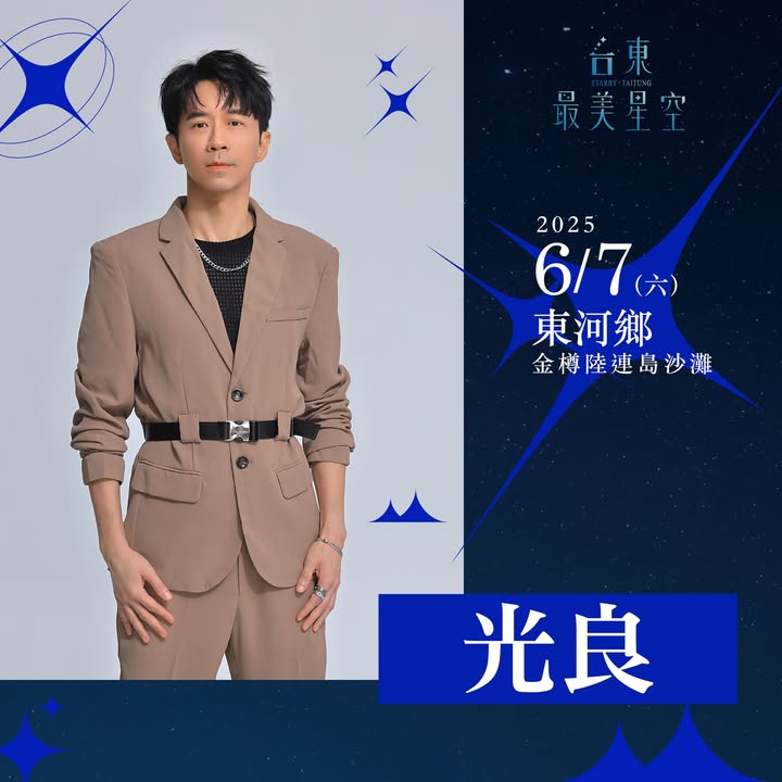 台東最美星空音樂會 #卡司公布不只天上繁星,地上也很多明星 ️6/07(六) 東河場:光良 Michael Wong、曾沛慈 Pets Tseng ️6/14(六) 卑南場:小男孩樂團 Men Envy Children - MEC Band、Angie 安吉 ️6/28(六) 關山場:南西肯恩、 貝克小姐Miss Bac. ️7/26(六) 大武場:艾怡良 Eve、王ADEN 下一波,還有更精采的唷~ 2025台東最美星空音樂會 免費入場|18:30-21:30| 更多精彩資訊盡在 台東最美星空 #台東 #活動 #台東景點 #台東最美星空 #最美星空 #觀星 #音樂會 #StarryTaitung - 2025-04-06
